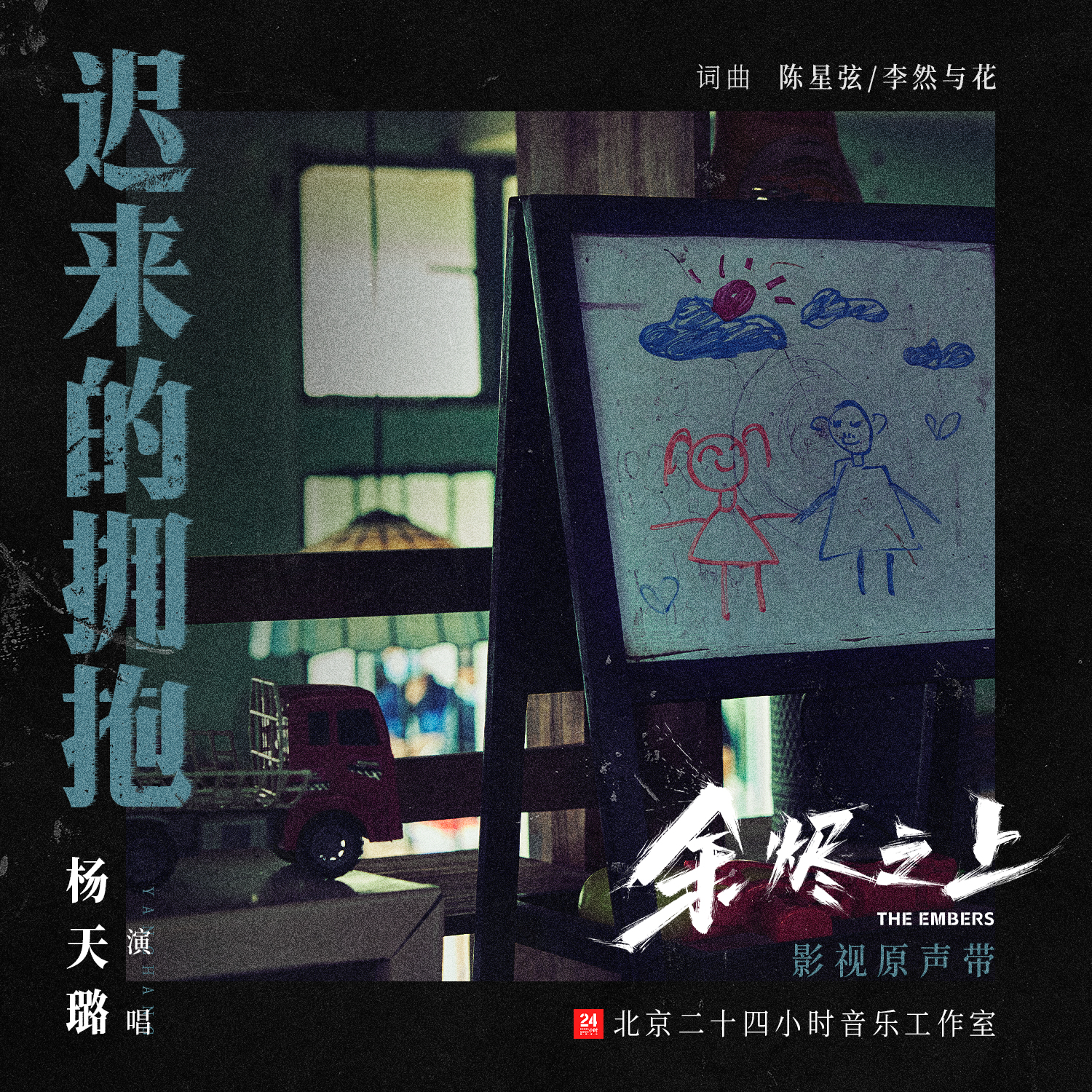 歌曲《迟来的拥抱》是电视剧《余烬之上》的插曲之一,由杨天璐演唱、任雅静【A.L.U】和王福担任制作人、陈星弦和李然与花作词作曲。在人生的长河中,每个人都会遇到那些身不由己的艰难时刻,仿佛被无形的力量牵引着,步入了一片迷雾之中。为了竭尽全力维持那份来之不易的安宁与和谐,明明想要靠近,却只能选择远离;明明想要呵护,却不得不展现自己的冷酷。在这种时候,惟愿周遭一切都能替我照顾你。刻画出了情感的羁绊,以及深沉的爱护与牵挂。